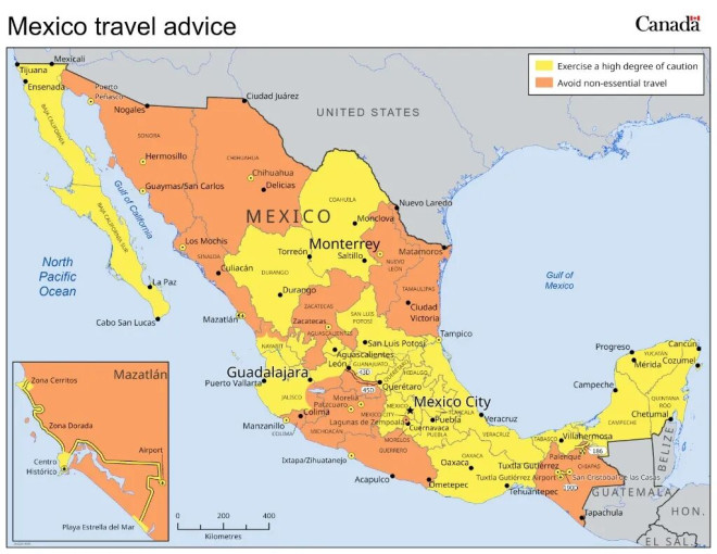 加拿大政府于昨天对墨西哥旅行发出最新警告,避免前往一些地区非必要旅行。