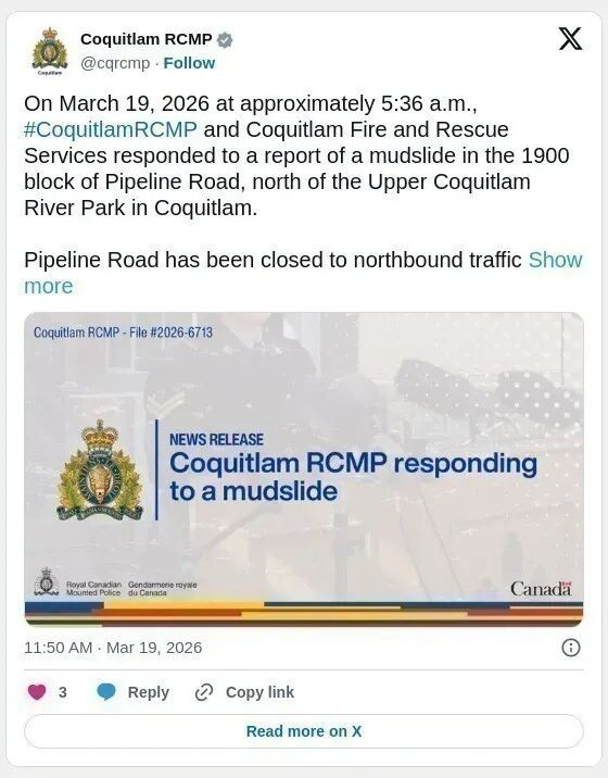 泥石流不仅毁路,还顺带“拔”掉了一排电线杆。直接后果就是,大约5000户居民瞬间停电。BC Hydro紧急派人抢修,进度却非常受限——地面太松,工程人员连站都站不稳,更别说操作设备。