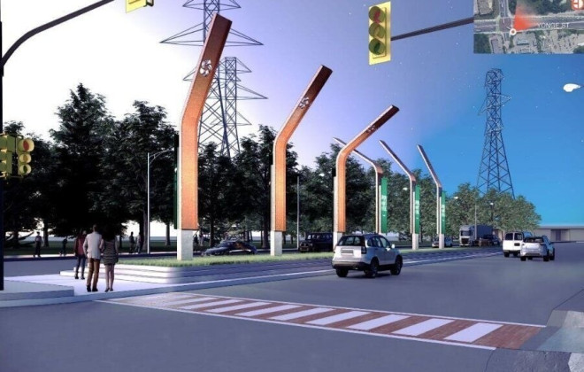 根据一份长达46页的市府报告,这个发光的门户装置将成为每天成千上万通勤者经过时看到的“城市入口”,报告称该艺术作品将成为“列治文山南部地标,是一个结合象征意义、耐久性和创新的城市门户”。