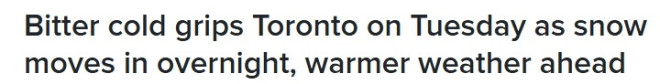Coulter指出,这场降雪正值多伦多本周经历“小型气温过山车”。