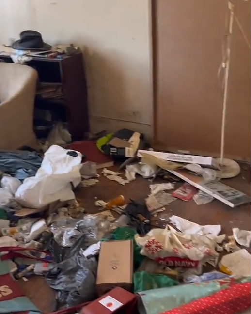 租客年轻时很漂亮,而现今却成了这个样子。被租客清理出一车垃圾后,屋子仍然惨不忍睹。