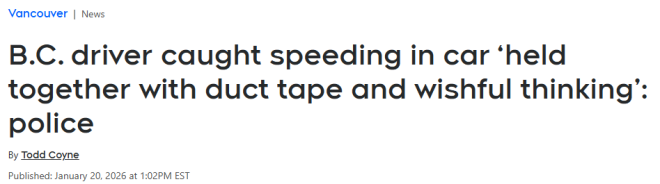 豪车开得快,那是车太好。但是“破车”也超速的话,那说明BC省天气太好了,肯定没怎么下雪。