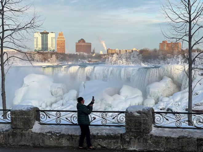 寒风刺骨也拦不住好奇心,近日游客们纷纷赶到尼亚加拉瀑布,目睹十年难遇的冰封画面。
