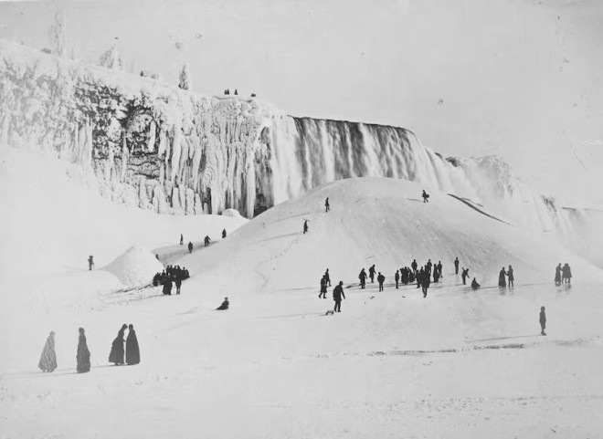 19世纪末的一张照片显示,人们曾站在临时形成的冰桥上,这座冰桥可连接加美两国。由于1912年发生致命坍塌事故,此后便禁止人们在冰桥上行走。