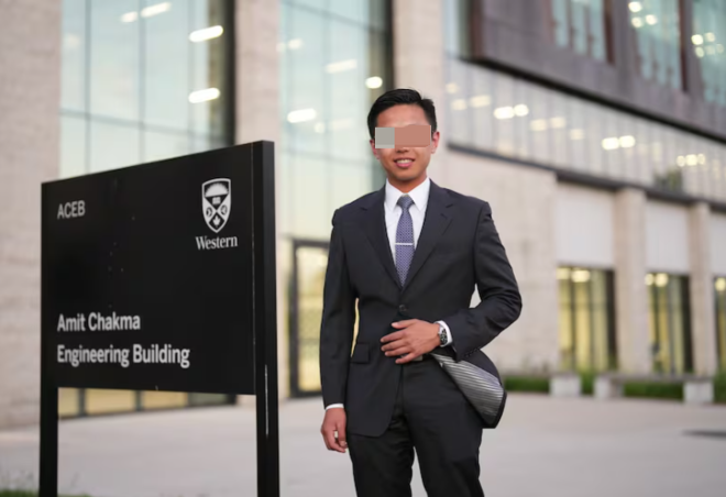 西安大略大学的学生名录显示,他是一名在读研究生,而毕业典礼名单显示他已获得工程科学硕士学位和理学学士学位。