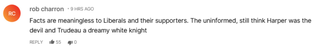 “事实对自由党及其支持者来说毫无意义。那些不明真相的人依然认为哈珀是‘魔鬼’,特鲁多是梦幻般的白衣骑士。”