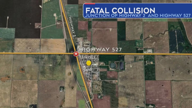 事故发生在一辆运砂石卡车与一辆小型轿车之间。周一晚些时候,皇家骑警(RCMP)确认了死亡消息。骑警表示:“半挂卡车司机是一名40岁的Stavely居民,仅受轻伤,并在现场接受了治疗。”