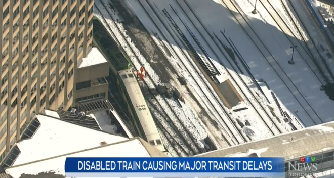 Metrolinx在周一下午向CP24提供的声明中表示:“一列从Union Station出发的列车在低速行驶时,列车尾部脱轨并撞上道岔,导致信号系统出现问题,列车自事故发生后一直停留在原地。”