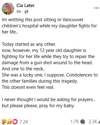 12岁女孩头颈中枪命悬一线!加拿大校园枪击受害者母亲含泪求祈祷