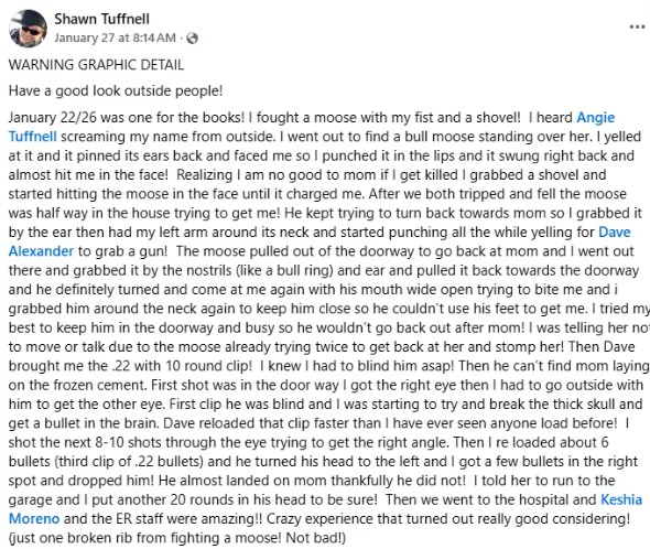 加拿大"猛男"为救母亲: 用拳头, 铁锹, 子弹干倒一头发疯的麋鹿!