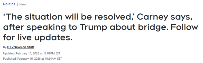 周二,联邦总理马克·卡尼(Mark Carney)在国会山参加内阁会议途中表示,他已与特朗普讨论了该桥问题。他表示,两人首先谈及加拿大与美国在奥运会的冰球比赛,随后讨论了多项国际事务,最后才谈到桥的情况。