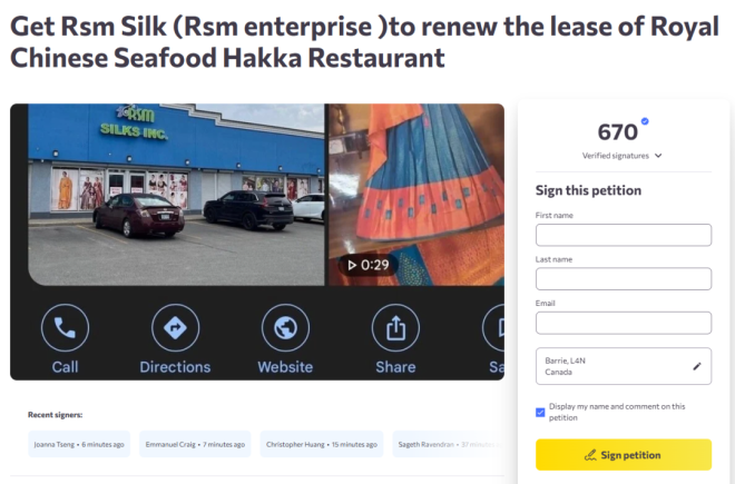 在餐厅宣布关闭的消息后,顾客Kajan Rajaratnam在Change.org上发起了一份请愿书,呼吁保留这家承载着社区记忆的餐厅。