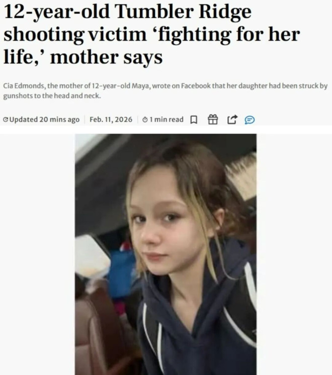 其中一名12岁女孩Maya,头部和颈部中弹,被紧急空运至温哥华BC儿童医院。家属最初被告知她可能撑不过当晚。医生连夜手术,目前仍在重症监护室。亲属发起的募捐已筹集超过10万加元。她是冰球队的一员,本赛季还在比赛中进过球。
