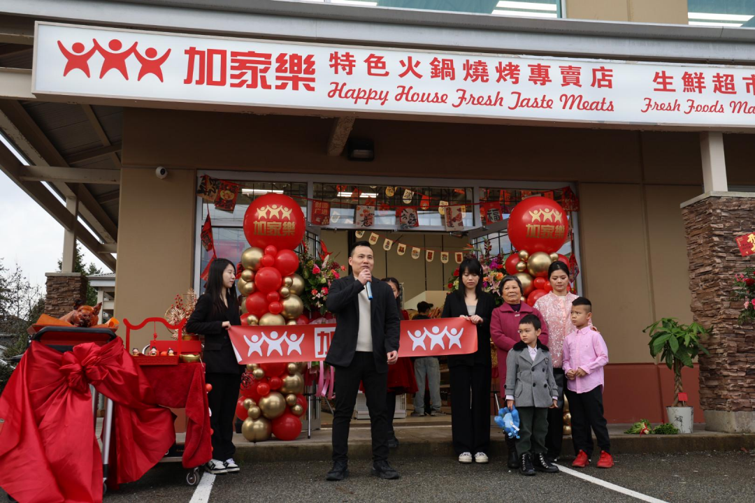 加家樂老板Raymond在致辞中对到场嘉宾和顾客表示热烈欢迎和衷心感谢。他分享了品牌从筹备到落地的历程,并强调新店将继续秉持“食材新鲜、原汁原味、口味正宗、真材实料”的理念,致力于为南素里及白石地区的顾客提供与列治文老店同样高品质的火锅烧烤食材及贴心服务。