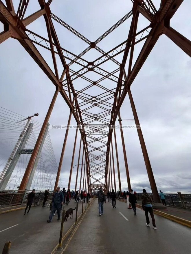 这个为大温人熟悉、连接素里市和新西敏市的橙色桥梁在服役89年后,已于周六随着新建四车道河景大桥(Stal̕əw̓asəm)的正式通车而永久关闭机动车车通行。