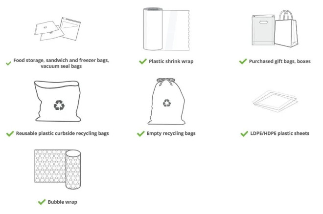 - 塑料袋(如面包袋、蔬果袋、散装食品袋等)