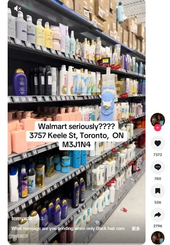 27 岁的沃尔玛加拿大顾客 Temitayo Odubanjo 于 2 月 3 日在多伦多 Keele 街 3757 号的一家门店购物时,惊讶地发现唯一被锁起来的护发产品是针对卷曲头发的。