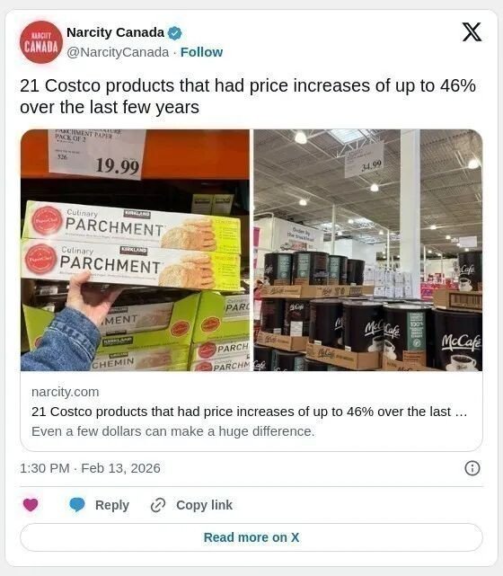以下是媒体Narcity 列出的Costco加拿大店内21种商品的近期涨价情况。