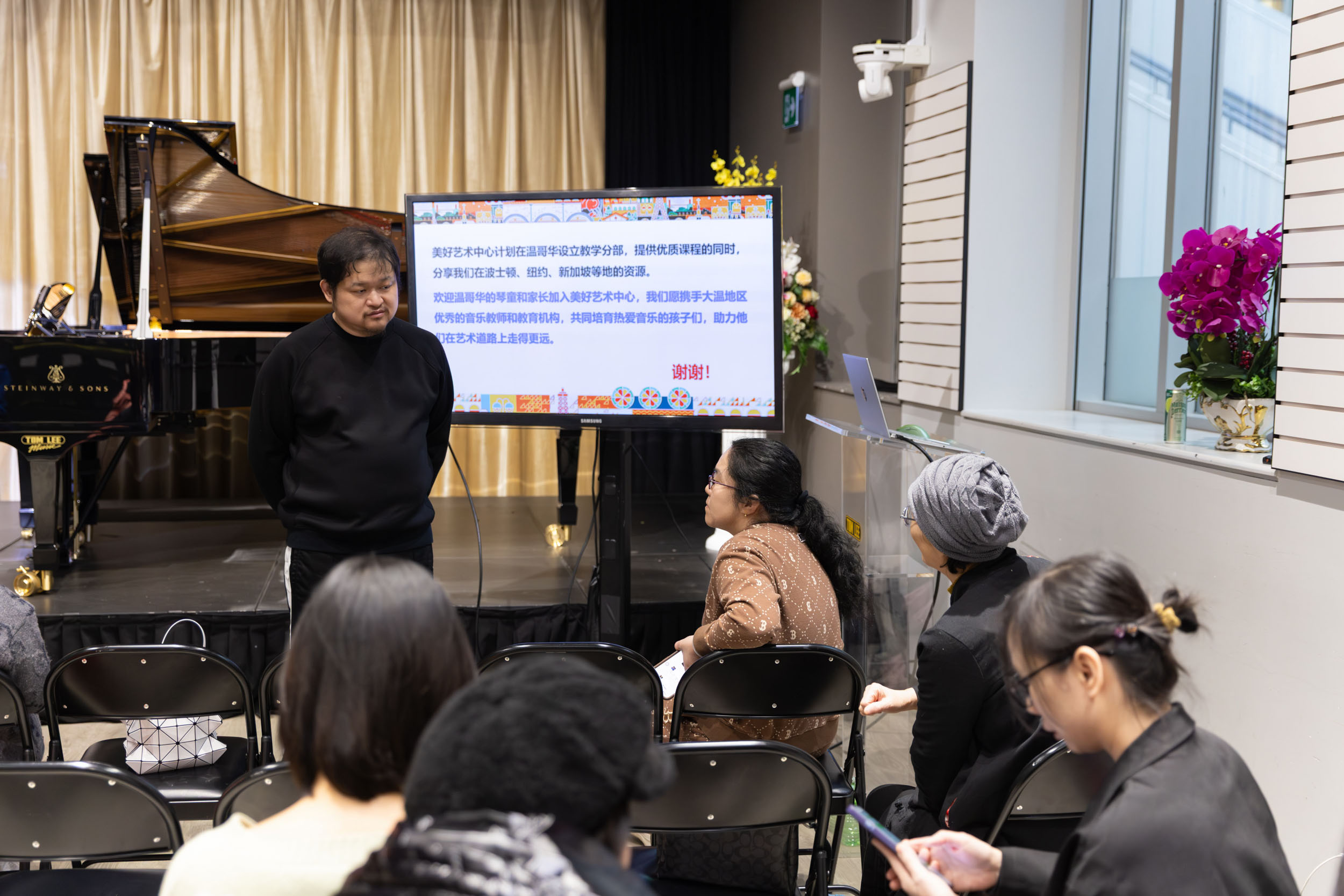 作为本次讲座的主持人,美好艺术中心加拿大负责人在开场环节围绕作曲学习的基础条件进行了分享。她指出,作曲训练离不开扎实的乐器能力支撑。