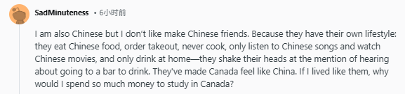 发帖人特别强调,他深爱自己的祖国,在加拿大也遇到过非常优秀的中国讲师和同学,但一小部分人的行为,正成为很多留学生想要逃离“华人小圈子”的主因。