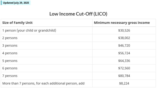 申请人必须提供证明,说明你的担保人(在加拿大的子女或孙辈)符合最低必要收入要求。