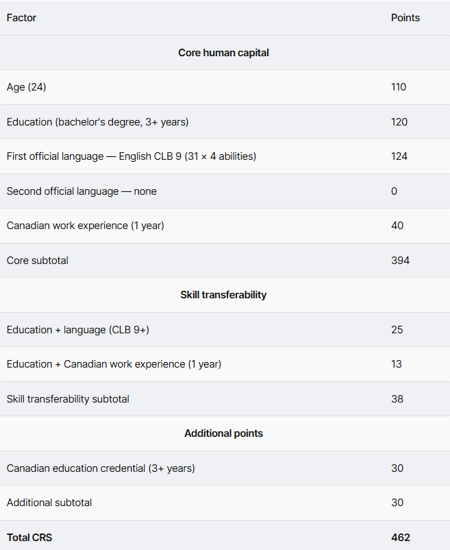 在三年的学习期间,她累计约1560小时带薪工作,相当于一年全职经验。根据IRCC定义,这类工作被视为海外工作经验,从而解锁技能转移加分。