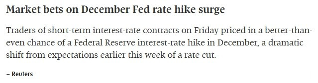 与此同时,美国市场的预期也发生了明显变化。交易员目前认为,今年12月美联储加息的概率已超过50%,而就在本周早些时候,市场还在押注降息。这种快速转向显示,全球金融市场正在重新评估风险,利率上行可能成为多个国家同步出现的趋势。