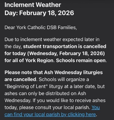 多伦多天主教教育局(TCDSB)表示,校车已取消,但学校仍将开放。