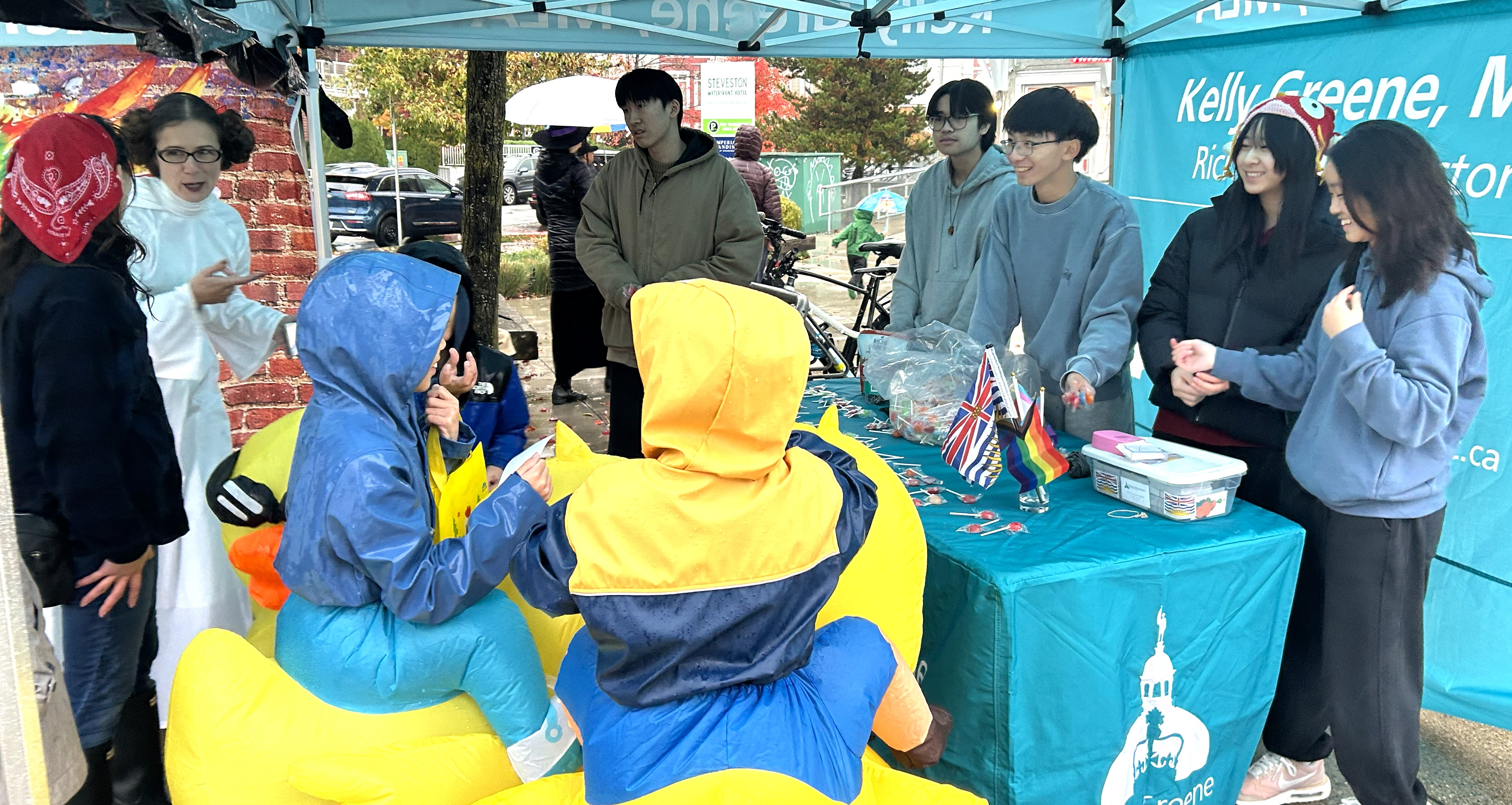 列治文讯 — 在风雨交加的万圣节当天,列治文—史蒂夫斯顿选区省议员葛凯莉(Kelly Greene)与她的团队参加了10月31日(星期五)举行的史蒂夫斯顿年度糖果巡游活动(Steveston Candy Crawl),热情迎接数百位充满活力的小朋友。这项活动已成为深受社区喜爱的传统之一。