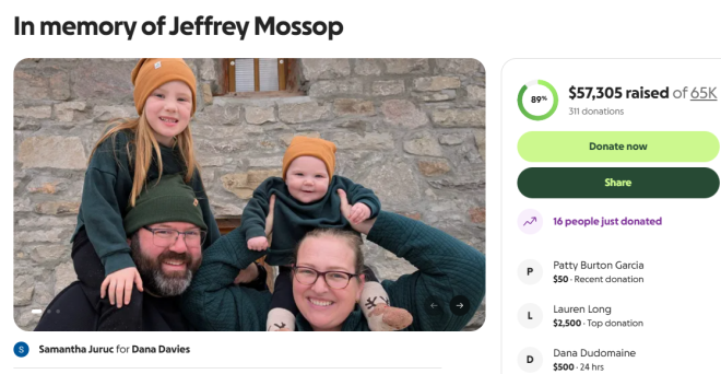 筹款页面写道:“Jeff感动了许多人的心,作为慈爱的父亲和珍贵的丈夫,他是家庭的支柱。所有认识并爱他的人都会深深怀念他。他的离去在家人心中留下了难以弥补的空缺。他的记忆将通过他美丽的女儿们延续。我们请求大家在这个艰难时刻帮助支持Dana、Arden和Rowan,帮助他们走过未来的道路。”