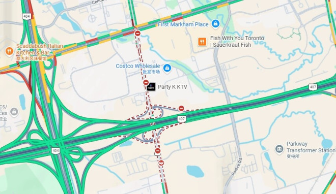 警方尚未说明事故的具体发生位置,但该区域通往407高速的四个匝道已全部关闭。
