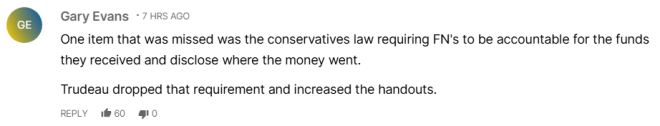 “有一点被忽略了,那就是保守党制定的法律要求原住民部落对所收到的资金负责,并公开资金去向。
