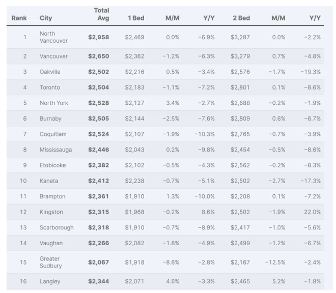 Rentals.ca 指出,目前温哥华公寓的平均租金为每月 2,630 加元,这是自 2022 年 2 月以来的最低水平。报告还提到,温哥华租金已经连续 26 个月同比下降。