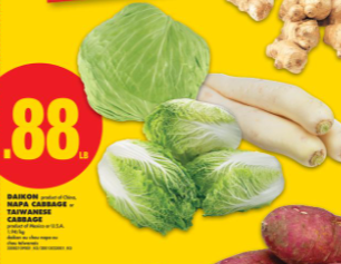 大白菜、白萝卜、高丽菜$0.88/lb!