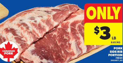 猪肋排(侧排)$3/lb!