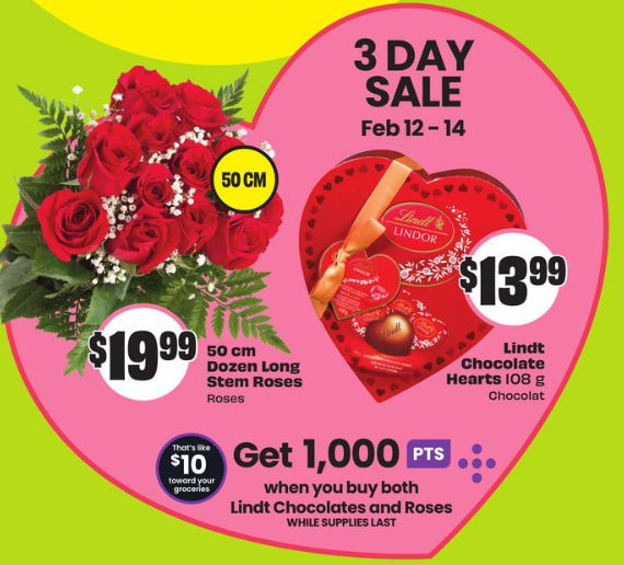 同时购买Lindt巧克力和玫瑰花返1000积分=$10刀,