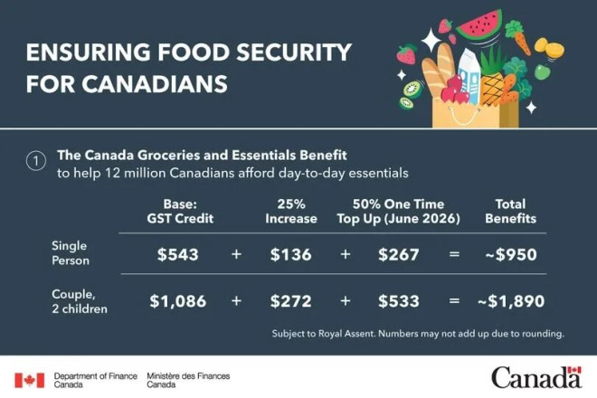 《加拿大杂货及必需品福利法案》 (Canada Groceries和Essentials Benefit) 是由加拿大政府于2026年1月宣布的一项新福利。该福利实质上是通过更名并增加现有的商品及服务税 (GST) 抵免额度,旨在缓解低收入和中等收入家庭面临的通货膨胀及食品价格上涨压力。