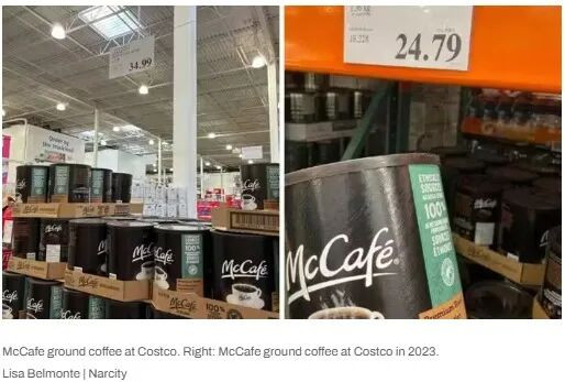 一罐1.36公斤装的McCafé研磨咖啡,目前在Costco售价为34.99加元。