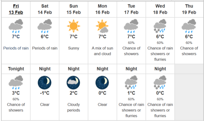 (温哥华一周天气预报,来源:加拿大环境及气候变化部)