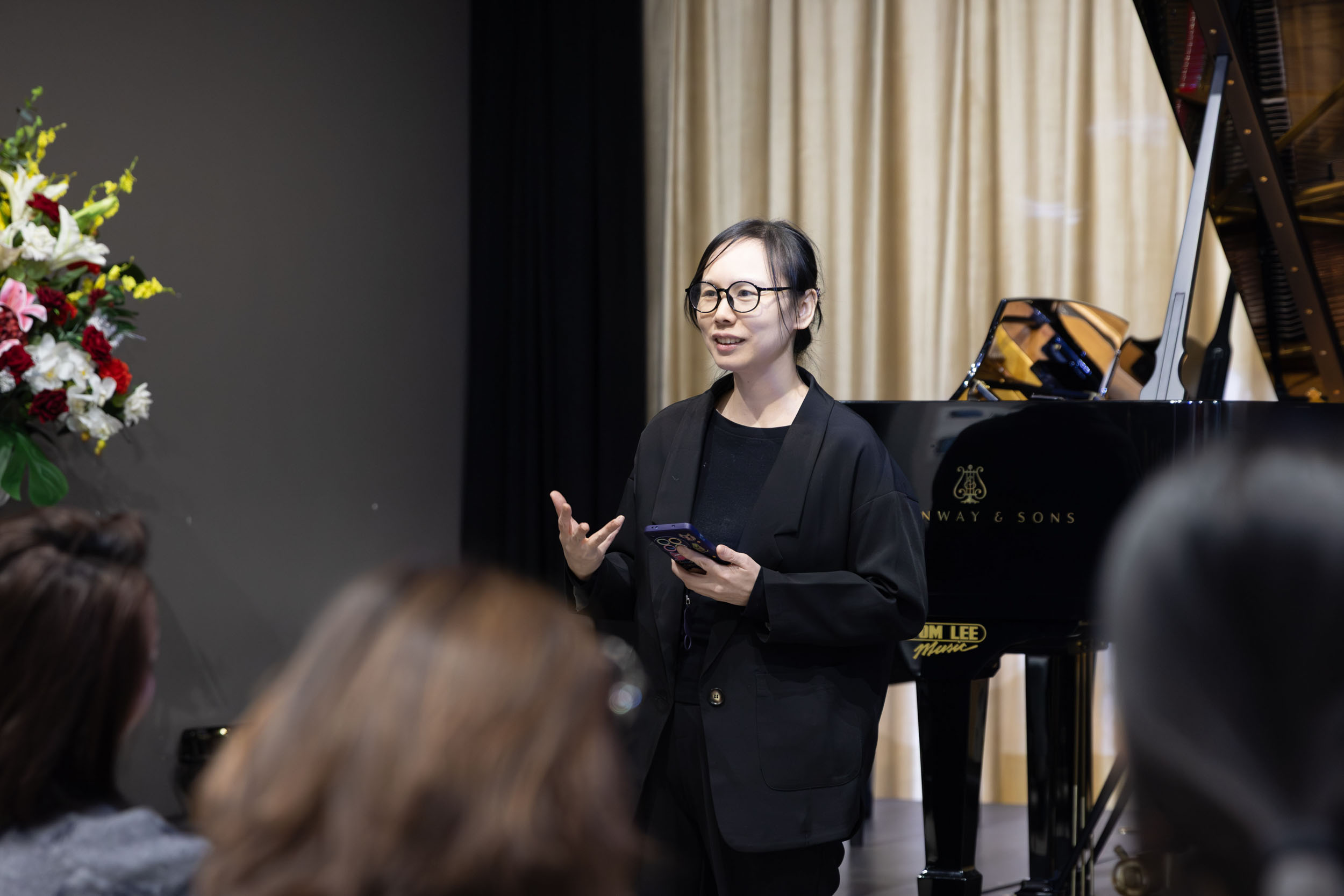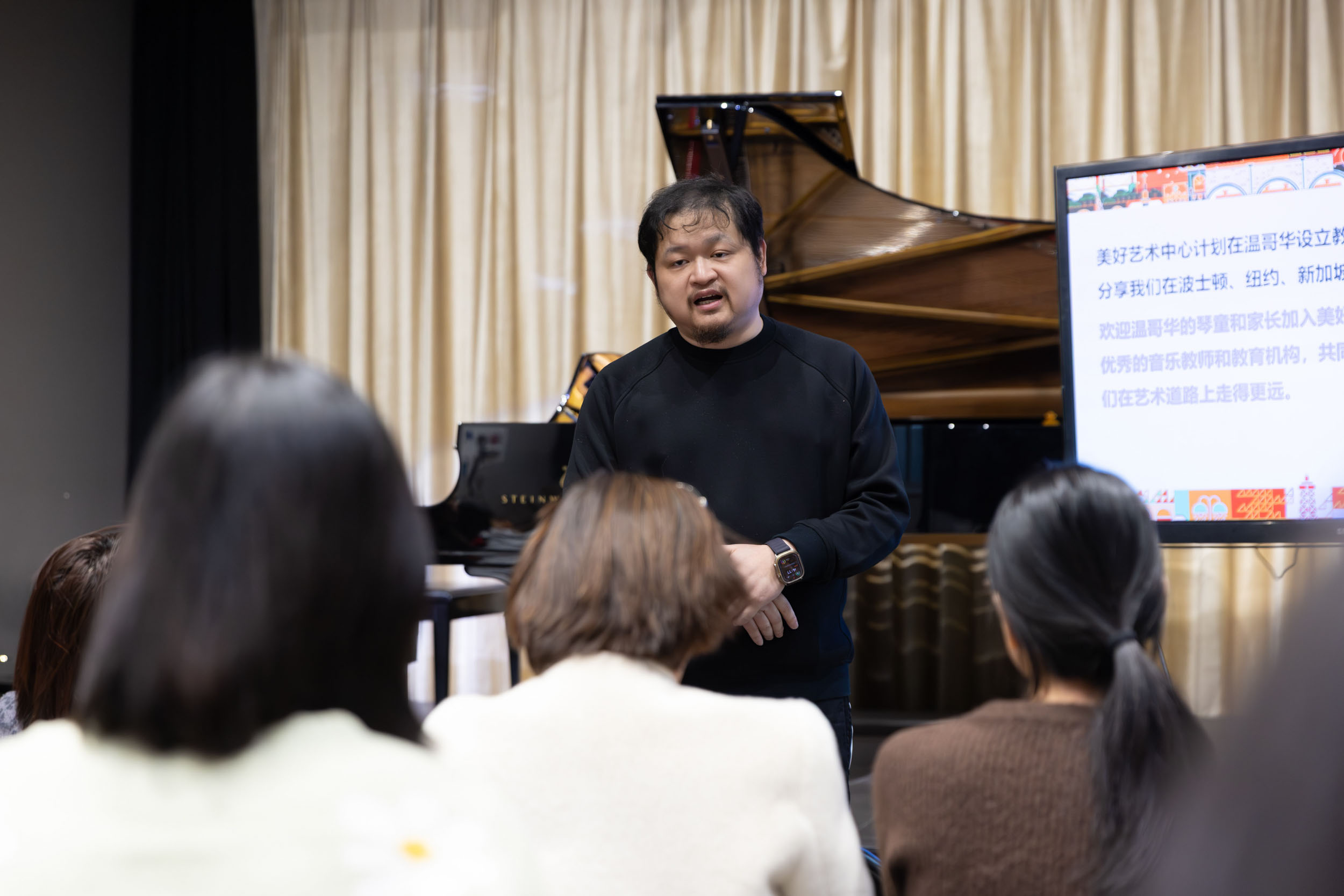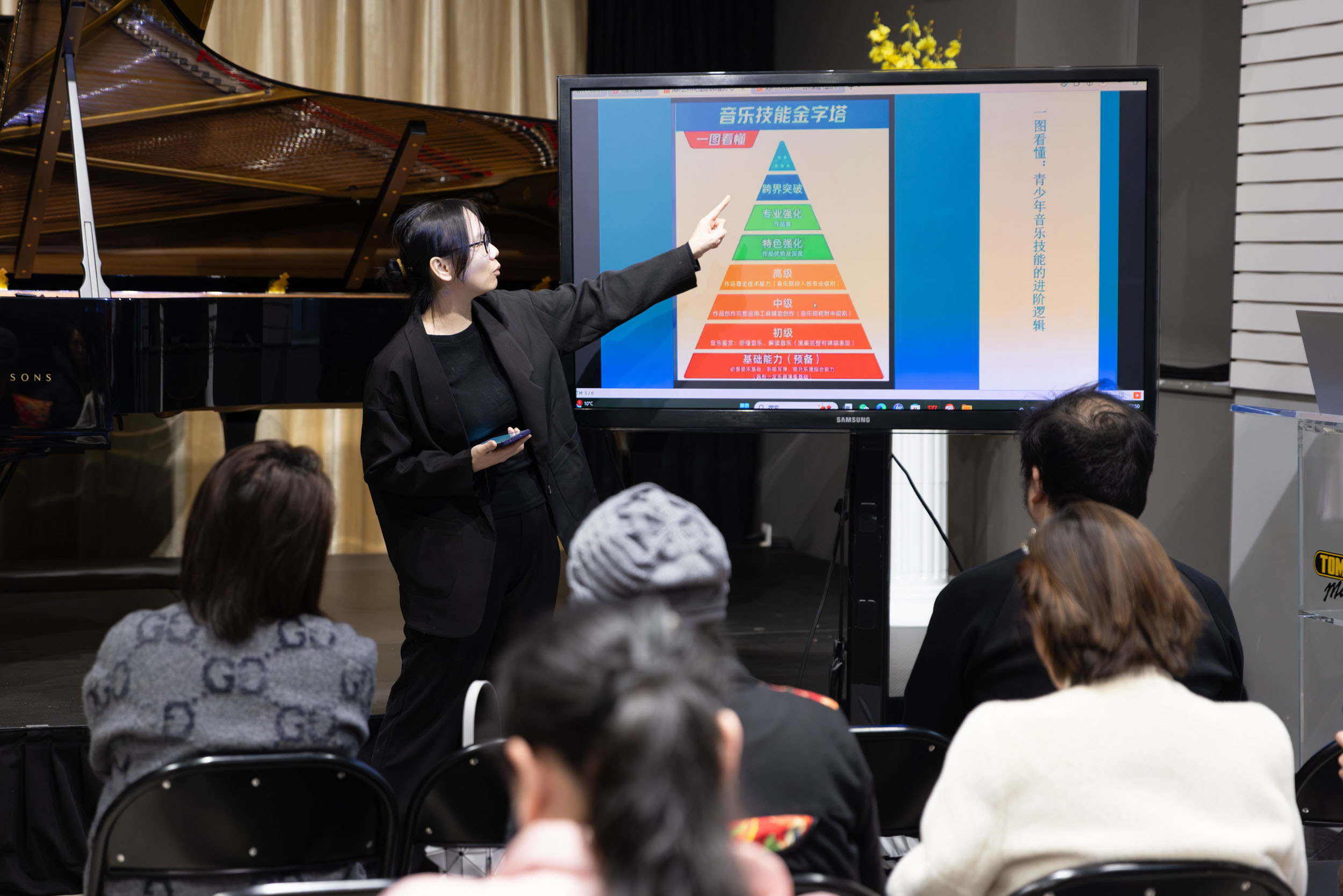 作为本次讲座的主持人,美好艺术中心加拿大负责人在开场环节围绕作曲学习的基础条件进行了分享。她指出,作曲训练离不开扎实的乐器能力支撑。